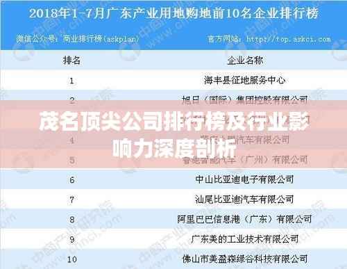 茂名顶尖公司排行榜及行业影响力深度剖析